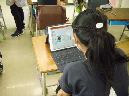 6年生が、8月に行く日光林間学園の事前学習として、タブレットで日光について調べています。
