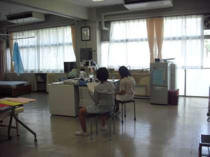 保健委員会の児童が、登校してすぐに、明日の昼の放送でお知らせすることの練習をしました。