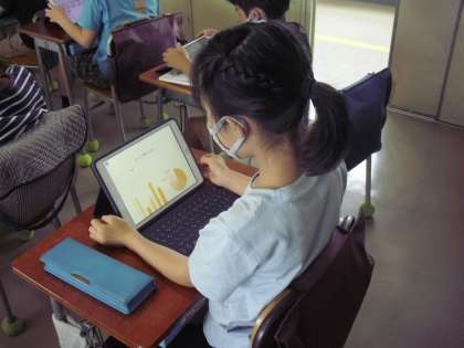 4年生が、タブレットを使って、アンケート調査をグラフにまとめました。