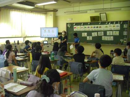 3年生が、外国語活動の時間に、ALTの先生とも一緒に、英語で様々な色の発音を学びました。