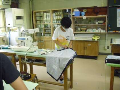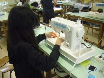 6年生が、家庭科の時間に、エプロンづくりをしました。