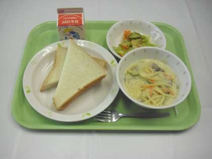 献立は、ジャムサンド、牛乳、シシリアン、野菜のイタリアンドレッシング和えでした。