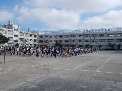 今年度、土曜授業日の朝に実施している体育朝会。今回は体全体を使ってじゃんけんをしました。