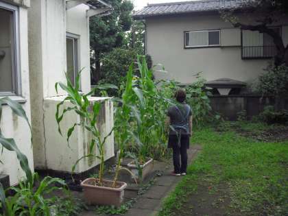 3年生が育てているとうもろこしとひまわりが、大人の背丈を超えました。