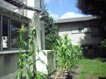 3年生が育てているひまわりととうもろこし、ぐんぐん成長しています。