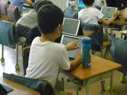 2年生が、タブレットを使って、ロイロノートの使い方を練習しました。