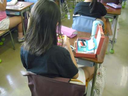 5年生が、家庭科で作成しているペンケースづくりを仕上げようと、一生懸命に活動に励んでいます。