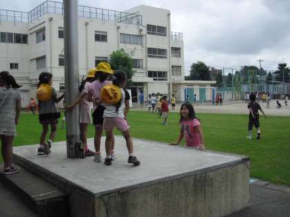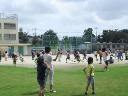 晴れたり曇ったり、台風の影響で天気は不安定でしたが、旭小の校庭にはさわやかな笑顔がいっぱいでした。昼休みには10人もの先生方が校庭に出て、たくさんの子ども達と楽しく過ごしていました。違う学年の子と遊んでいる様子も見られました。今年度の生活重点目標は「天気のよい日は 外で遊ぼう」です。校庭で遊ぶと、こ・ころがスッキリ。う・んどうして体力アップ。て・いこうりょくアップ。い・っぱい友達ができるのです。
