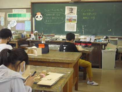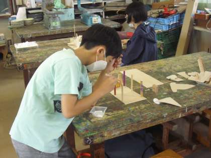 5年生が、図工の時間に、「でんのこアートけんちく」をつくり、材料の使い方を工夫して自分のイメージを表すように努めました。