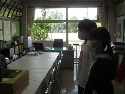 6年生の代表児童が、「新型コロナウイルス感染症の予防をして、感染者数が少なくなってきているからといって気を緩めないで、生活しましょう」と話し、皆で「おはようございます」の挨拶をして、全校朝会始めました。