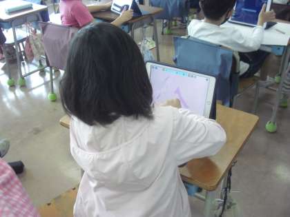 2年生の児童が、タブレットで、自分なりに工夫をして魚を表現しました。