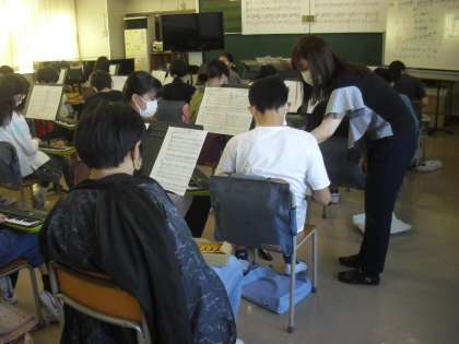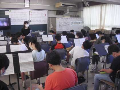 授業の様子(9月29日)その8 公開日 2021/09/29 更新日 2021/09/29 今日のできごと 6年生が、音楽の時間に、6年生が、ラバーズコンチェルトの副次的な旋律パートの特徴を捉えて、ミニグロッケンで演奏しました。
