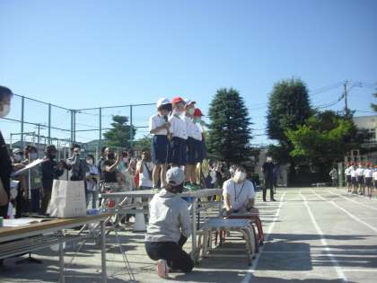 晴天の中、開会式では、1年生の代表児童が、はじめのことばを堂々と言いました。