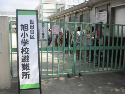 9/10 避難所運営訓練 その1 公開日 2011/09/10 更新日 2011/09/10 今日のできごと 9月10日(土)に、旭小学校を会場として「避難所運営訓練」が行われました。今年度は野沢四丁目町会の田嶋 宏会長を避難所運営本部長として、5つの町会・日赤等の皆様のご協力により運営されました。参加者は、約300人。旭小学校からは、教員・PTA役員・クラス校外委員会等が参加しました。避難所開設宣言に続き、受付が設置され、アルファ米の炊き出しが始まりました。