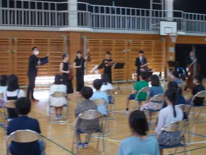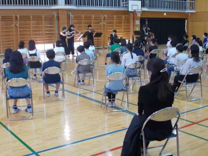 音楽鑑賞教室(10月8日) 公開日 2021/10/08 更新日 2021/10/08 今日のできごと 5年生を対象に音楽鑑賞教室を実施しました。 東京フィルハーモニー交響楽団のメンバーによる弦楽五重奏を味わいました。