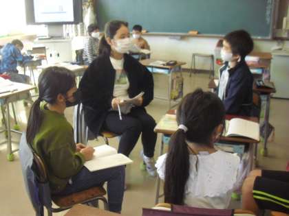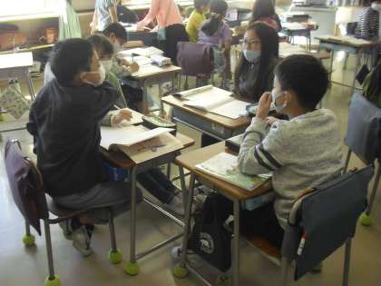 授業の様子(10月20日)その9 公開日 2021/10/20 更新日 2021/10/20 今日のできごと 3年生が、国語の時間に、「はんで意見をまとめよう」を目標に学習しました。 話合いの仕方を学ぶ単元です。 話し合うためのポイントは、話し合う目的が分かっていること、きめることは何かが分かっていること、話し合う時の役割が互いに理解していることです。 教科書に書かれている説明を理解して、どのグループも話合いをしました。