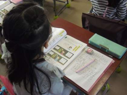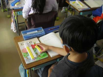 10のかたまりをつくるようにすることが大切ですが、そのことが、くり上がりにつながります。答えにたどり着くために、考え方としては、複数あることにも驚いている児童がいました。答えは一つでも、多様な考え方を学ぶことも、1年生にとっては大切なことです。