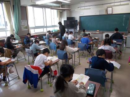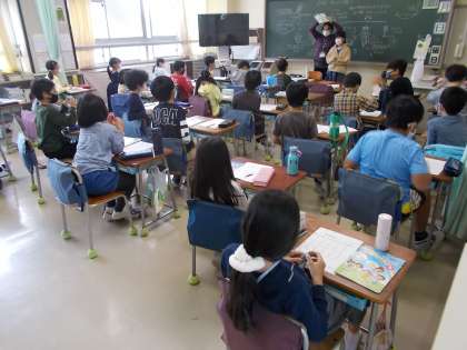 授業の様子(10月27日) 公開日 2021/10/27 更新日 2021/10/27 今日のできごと 3年生の2校時の授業の様子です。 1組 英語活動、2組 国語(漢字の広場)、3組 国語(説明文「すがたをかえる大豆」)