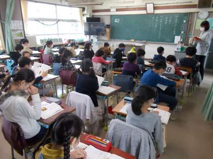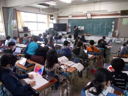 授業の様子(10月27日)その2 公開日 2021/10/27 更新日 2021/10/27 今日のできごと 4年生の2校時の授業の様子です。 1組・2組とも国語(「世界にほこる和紙」「伝統工芸のよさを伝えよう」)