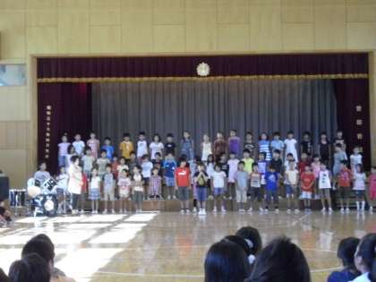 今朝は、音楽朝会がありました。1曲目は、3年生による合唱「空よ風よヒマラヤ杉よ」です。3年生は、体全体で曲を感じながら、きれいな歌声を発表しました。2曲目は、全校児童による今月の歌「少年時代」でした。音楽クラブの伴奏と全校の歌声が響き合いました。また、今朝は台風一過でしたので、校庭に何本も大小の枝などが落ちていました。「危ないから」と登校してきた子ども達が次々と拾い集めてくれました。さわやかな朝の話題2つです。