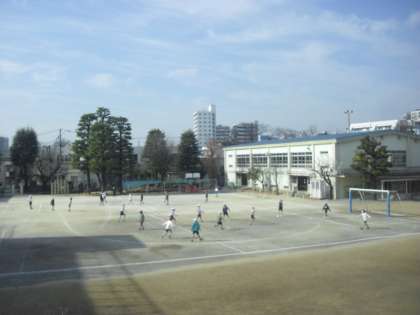 5年生が、体育の時間に、チームに分かれてサッカーの試合をしました。
