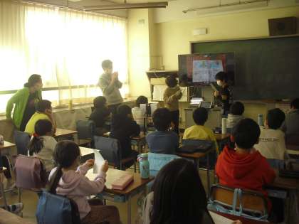 3年生が、外国語活動の時間に、英語で自分のことについて相手に伝えることをしました。
