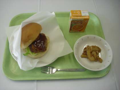 給食(3月4日) 公開日 2022/03/04 更新日 2022/03/04 今日のできごと 献立は、セルフバーガー、フライドポテト、オレンジジュースでした。 児童は、オレンジジュースが興味津々で、とても楽しみにしていました。