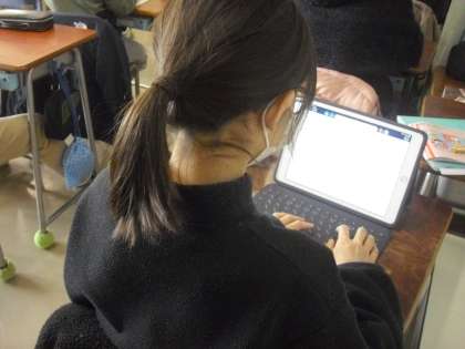 5年生が、国語の時間に、タブレットを活用して、将来の夢について表現しました。