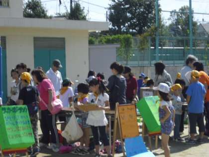 10/16 「えんにち」・2 公開日 2011/10/16 更新日 2011/10/16 今日のできごと 南風連の子ども達による江戸囃子が響く中、いよいよ野沢児童館「えんにち」が開会しました。中里小・中丸小・駒繋小・旭小の子ども実行委員による開会宣言。あっという間に旭小は、たくさんの人の笑顔でいっぱいになりました。