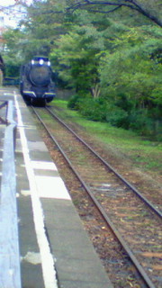 日本で1番短いSLに乗っています。乗車時間は、約30秒。何回も往復してくれます。