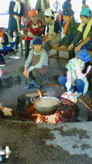 飯ごうを使って、ご飯を炊いています。カレーも作ります。晩ご飯は、ちゃんと食べられるのでしょうか。