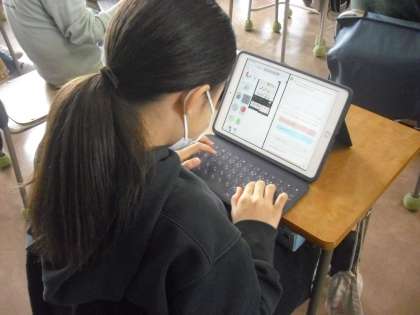 授業の様子(3月17日)その4 公開日 2022/03/17 更新日 2022/03/17 今日のできごと 5年生が、国語の時間に、テーマを決めてアンケートを作り、タブレットを活用して回答を集計して、分析した考えを発表する準備をしました。