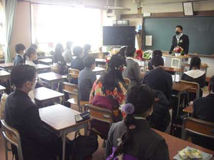 卒業式(3月25日) 公開日 2022/03/25 更新日 2022/03/25 今日のできごと 本校の第97回卒業式を行いました。 穏やかな日差しの中、さわやかな表情で登校してきた6年生は、教室で、担任から、小学校生活最後の学級指導を受けました。