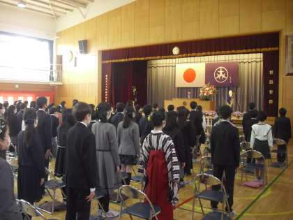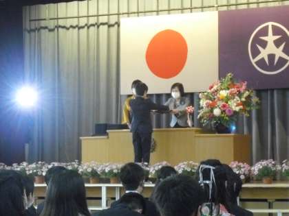 卒業証書授与は、卒業証書を一人一人、檀上で校長から受け取りました。とても立派な態度でした。