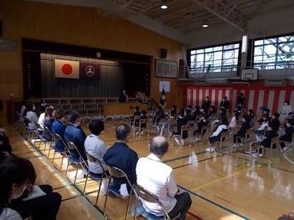 入学式(4月6日) 公開日 2022/04/07 更新日 2022/04/07 今日のできごと 入学式は、今年度も新型コロナウイルス感染予防のため、学級毎に実施しました。 上から1組、2組・ひまらや学級、3組・こもれび学級の様子です。