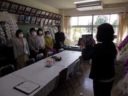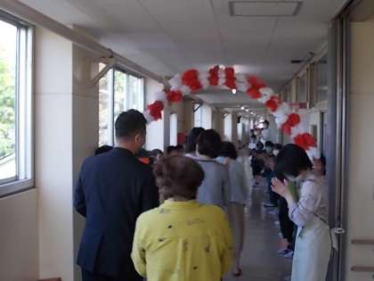 離任式(4月28日) 公開日 2022/04/28 更新日 2022/04/28 今日のできごと 6校時に離任式を行いました。式自体は校長室からオンラインで実施、その後廊下に並び花道をつくりお送りしました。