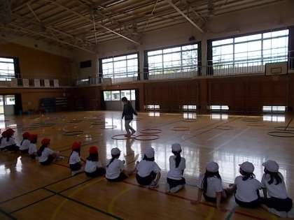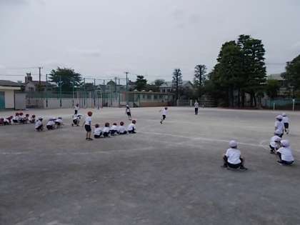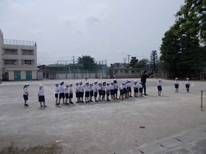 3学級とも体育です。1組・2組は校庭、3組は体育館です。