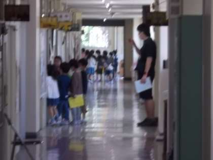 1年生と2年生の混成グループで生活科「がっこうたんけん」を行いました。