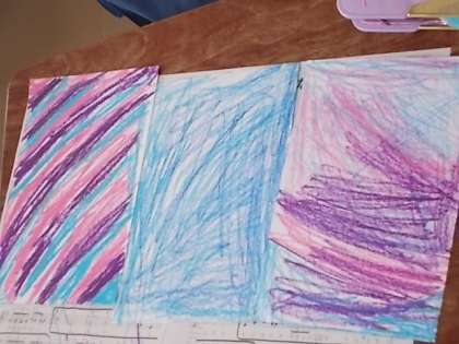 授業の様子(6月3日) 公開日 2022/06/03 更新日 2022/06/03 今日のできごと 1年1組の3校時の様子です。 図画工作 題材名「クレヨンやパスとなかよし」 本時の目標「クレヨンで形や色を工夫して描くようにする」「いろいろな描き方や塗り方を考えようとする」「クレヨンで描くことを楽しもうとする」