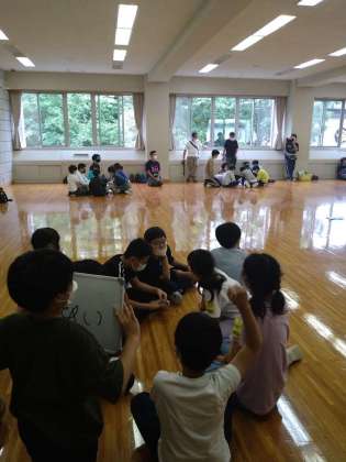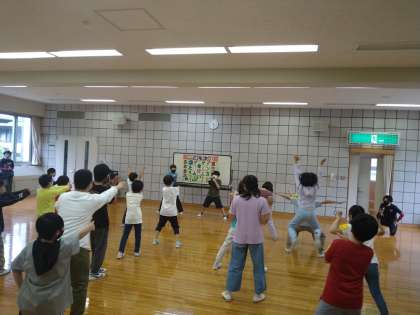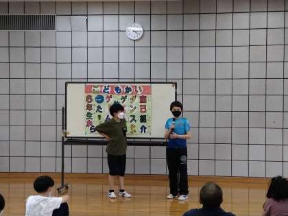子ども会は、4校の子どもたちが集まり、ダンスやゲーム、歌などをします。旭小の二人は、ゲームを担当し、みんなを大いに盛り上げてくれました。