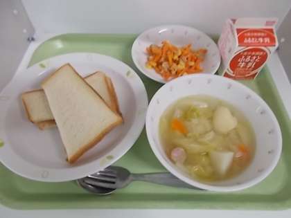 献立は、ジャムサンド、牛乳、ポトフ、人参サラダでした。
