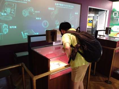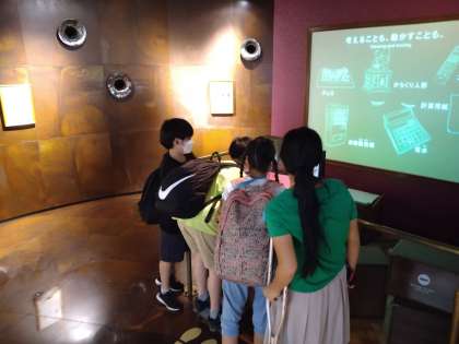 館内では、グループごとに体験しています。