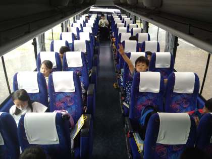 ひとまず雨は上がりましたが、念のため、バスの中でのお弁当にしました。