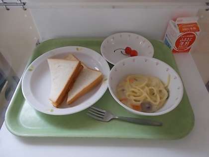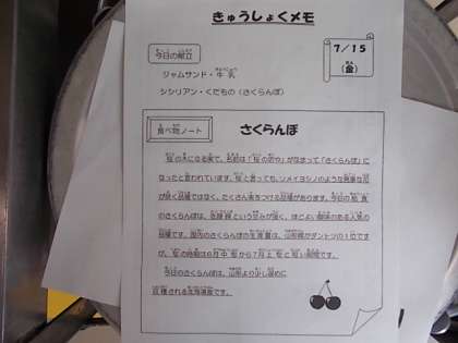 献立は、ジャムサンド、牛乳、シシリアン、サクランボでした。