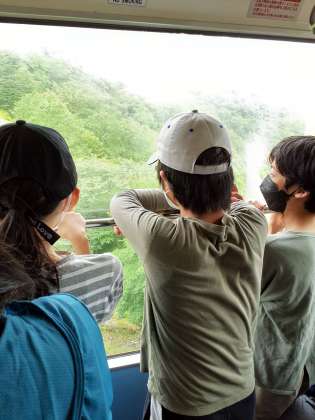 「ロープウェイ、楽しみなんだ」という子たちを乗せ、出発しました。