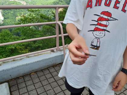 おのおの景色を楽しんでいます。トンボを捕まえた子も。ロープウェイを動かす様子が見られました。