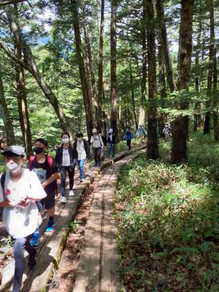 爽やかな風が吹いています。木立が日を遮ってくれるので、気持ちよく歩けています。