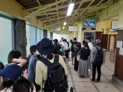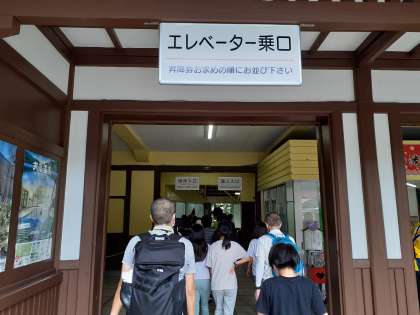 華厳の滝です。まずエレベーターで100m下ります。
