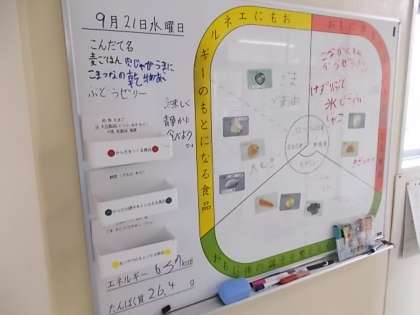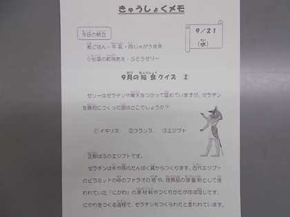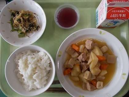 献立は、麦ごはん、牛乳、肉じゃがうま煮、小松菜の乾物あえ、ぶどうゼリーでした。