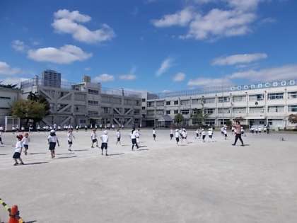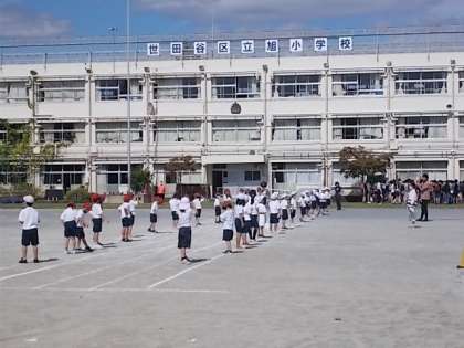 写真(上)で集合している6年生は駒留中学校体験で出かけました。
